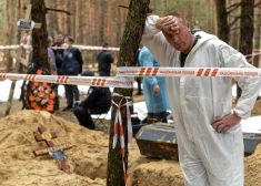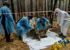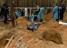 Pēc krievu okupantu padzīšanas atklāta masu apbedījumu vieta Harkivas apgabalā pie Izjumas. 2022. gada septembris