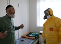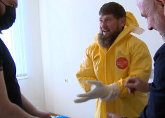 Čečenijas līderis Ramzans Kadirovs aizsargtērpā aprauga Covid-19 pacientus