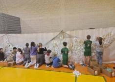 Milzīgs maskēšanās tīkls Ukrainas aizstāvjiem tapis Staļģenes vidusskolā