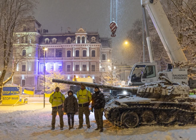 Rīgā pie Krievijas vēstniecības uzstāda Ukrainas armijas iznīcinātu okupantu tanku