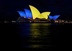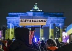 Izgaismoti nami Ukrainas karoga krāsās un demonstrācijas - cilvēki visā pasaulē piemin kara gadadienu