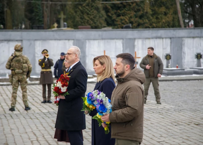 Levits kopā ar Zelenski kapsētā Ļvivā piemin kritušos Ukrainas karavīrus