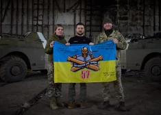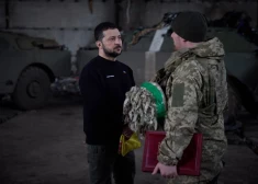 "Man ir tas gods būt šodien šeit, mūsu valsts austrumos, Donbasā un apbalvot mūsu varoņus, pateikties jums, paspiest roku. Paldies, ka aizstāvat valsti, suverenitāti, Ukrainas austrumos," uzrunājot karavīrus, pavēstīja Zelenskis.