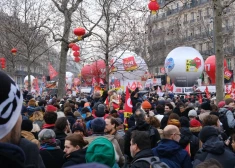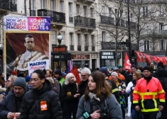 "Makron, nē!" Francijā cilvēki iet demonstrācijās, streiko un lamā prezidentu, protestējot pret pensiju reformu. 2023. gada janvāris-marts