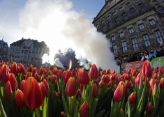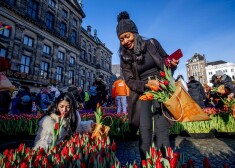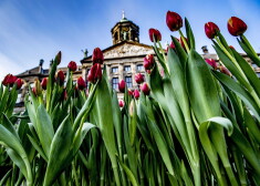 Amsterdama aizrauj elpu pilsētas viesiem tradicionālajā tulpju dienā