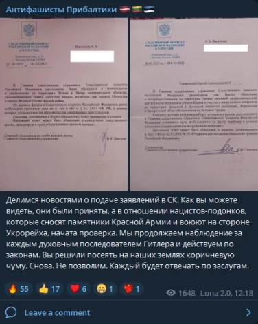 Nav maznozīmīgi, ka šos dokumentus pacentušies iesniegt no Latvijas uz Maskavu aizbēgušie prokrieviskie aktīvisti, kuri nu jau kādu laiku apvienojušies visnotaļ savdabīgajā grupējumā “Baltijas antifašisti”.