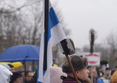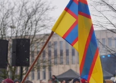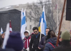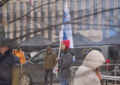 Latvijā dzīvojošie krievu tautības cilvēki protestē pie Krievijas vēstniecības pret karu Ukrainā.