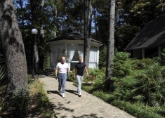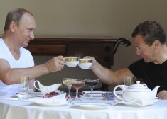 Saulainais svētdienas rīts Sočos pie Putina un Medvedeva