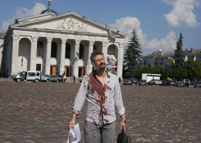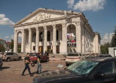 Okupantu izpostītā Čerņihiva pēc raķetes trieciena Drāmas teātrim 2023. gada 19. augustā