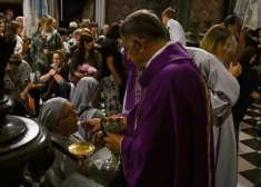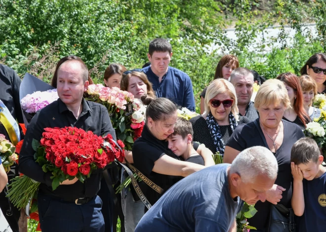 Ļvivā atvadās no okupantu nogalinātās ģimenes - 32 gadus vecās Anastasijas un viņas mātes Miroslavas. Ukraina, 2023. gada jūlijs