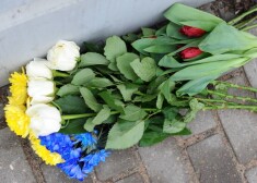 Pieminot noslepkavoto Krievijas opozicionāru Borisu Ņemcovu, pie Krievijas vēstniecības Rīgā tiek nolikti ziedi.