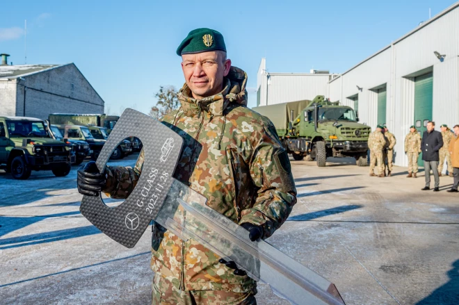 Lietuvas armija saņem jaunos "Mercedes-Benz G 350 d" apvidus auto. Kauņa, 28.11.2023.