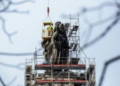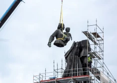 Pieminekļa demontāža notiek stingrā likumsargu uzraudzībā: