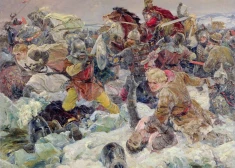 Viena no spilgtākajām epizodēm bija Peipusa ezera (uz tagadējās Igaunijas un Krievijas robežas) jeb Ledus kauja 1242. gada 5. aprīlī, kad Novgorodas karaspēka priekšgalā stājās Vladimiras-Suzdaļas lielkņaza dēls Aleksandrs, kurš 1240. gada pavasarī bija sakāvis zviedrus, kas bija ar kuģiem ieradušies Ņevas grīvā (pateicoties šai uzvarai, kņazs arī ieguva pavārdu „Ņevas” jeb „Ņevskis”).