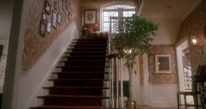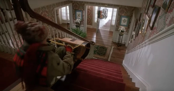 Īpašumu raksturo kā "vienu no slavenākajām mājām pasaulē", kurā atrodas divas dzīvojamās istabas, liela virtuve, trīs automašīnu garāža un "neaizmirstamās kāpnes", pa kurām Kalkins nobrauca ar ragaviņām.