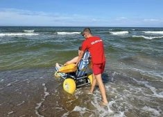 Cilvēki ratiņkrēslā Klaipēdā var peldēties Baltijas jūrā