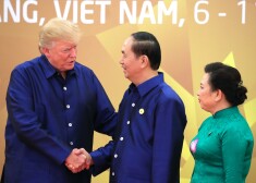 Putins un Tramps Vjetnamā sarokojas un pozē fotogrāfiem