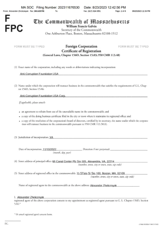 2021. gadā Žeļezņaks Savienotajās Valstīs izveidoja juridisku personu Anti Corruption Foundation (ACF), kas cieši saistīta ar Navaļnija izveidoto organizāciju KAF. Savukārt Ļeontjevs reizi mēnesī pārskaitījis KAF 20 000 dolāru, pausts The Financial Times 2022. gada decembra publikācijā.