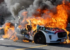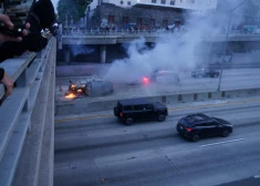 Bloķēti ceļi un degošas automašīnas: Losandželosā protestē pret imigrācijas reidiem un Nacionālās gvardes iesaisti. FOTO, VIDEO