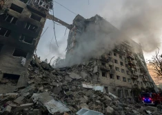 VIDEO: Krievijas nāvējošākais uzbrukums Kijivai pēdējo mēnešu laikā nolīdzina daļu daudzdzīvokļu nama