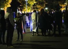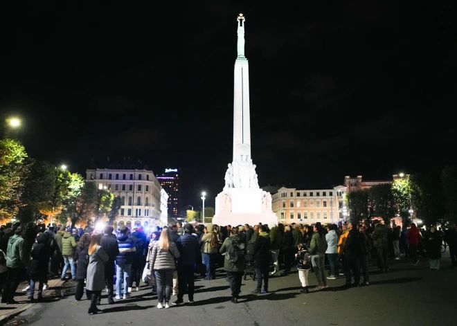 Pie Brīvības pieminekļa apmēram 300 cilvēku sestdienas vakarā piemin teroristu organizācijas "Hamas" nogalinātos cilvēkus Izraēlā.