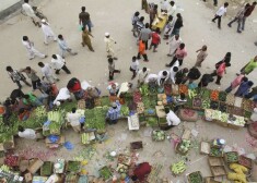 „Šajā karstumā gidi tūristiem no rietumiem parasti iesaka neuzturēties tiešos saules staros ilgāk par piecām minūtēm. Bet pilsētas būvnieki strādā 14 stundas dienā 50 grādu sutoņā,” situāciju raksturo fotogrāfs.