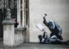 Anonīmais mākslinieks Benksijs turpina atstāt aiz sevis provokatīvus vēstījumus. Šoreiz nav palikusi neskarta Karaliskās tiesas ēkas siena centrālajā Londonā.
