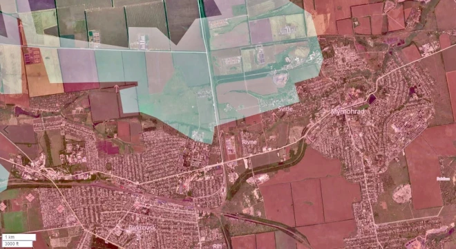 Pašreizējā ASV Kara pētījumu institūta (ISW) militārā karte rāda, ka Mirnohrada ir pilnībā okupēta, tomēr Ukrainas frontes līnija, kas uzrauga "Deep State" karti, pilsētas ziemeļrietumu nomalē ir iezīmējusi tā saukto pelēko zonu — aktīvu kauju teritoriju bez skaidras teritoriālās kontroles.
