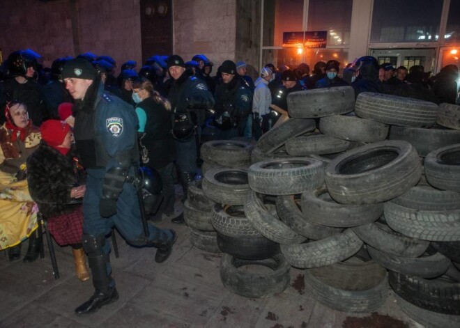 Prokrieviskie demonstranti veido barikādes Doņeckas administrācijas ēkā