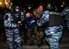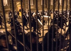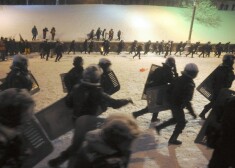 Pret demonstrantiem ik pa laikam tiek liktas lietā trokšņa granātas, savukārt mītiņa dalībnieki uz to atbild, metot "Molotova kokteiļus" un akmeņus.