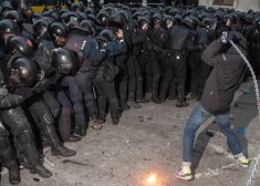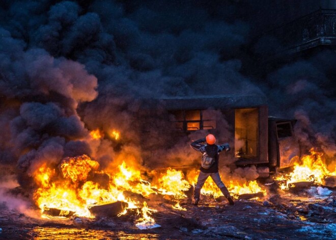 2014. gada janvāris. Vardarbīgās sadursmes starp opozīcijas protestētājiem un likumsargiem Kijevā