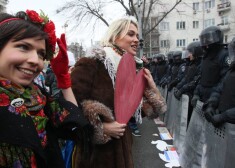 Protestētāji un specvienību kaujinieki netālu no Ukrainas prezidenta administrācijas ēkas