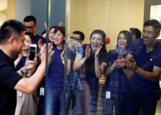 Pasauli atkal pārņēmis "Apple" trakums: cilvēki spiežas, grūstās, drūzmējas un guļ pie veikaliem. FOTO