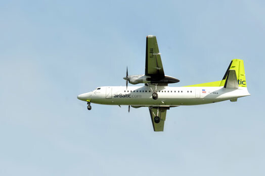 "airBaltic" flotē ir 34 lidmašīnas: sešas "Boeing 737-500", astoņas "Boeing 737-300", divas "Boeing 757-200", desmit "Fokker 50" un astoņas "Bombardier Q400Next Gen". "airBaltic" veic tiešos lidojumus no trim Baltijas valstu galvaspilsētām - Rīgas, Viļņas un Tallinas.