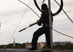 Fotogalerijā: kā uz bijušās bibliotēkas ēkas jumta jūlijā filmu filmēja.