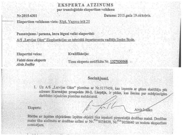 Pavisam drīz, 2015.gada 19.oktobrī, klāt arī ekspertīzes rezultāti – valsts tiesu eksperts Aivis Ivaško, veicot paredzētās procedūras, secinājis, ka uz šī skaitītāja plombas esot "pēdas, kas liecinot par mērķtiecīgām darbībām iejaukties plombas mehānismā". Neilgi pēc tam uzrēķinātas arī soda sankcijas – 8745,70 eiro.