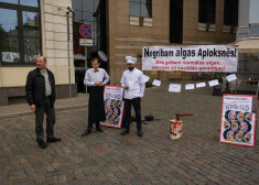Šorīt Vecrīgā pie restorāna “Tokyo City” filiāles garāmgājēju uzmanību piesaistīja pikets pret aplokšņu algām. Lai arī piketā piedalījās vien divi ...
