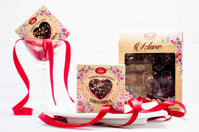 * LĀČU ekskluzīvā dizaina ŠOKOLĀDES tāfelītes - piesātināti enerģētiskā TUMŠĀ un RUBY izsmalcinātā rozā ar brūklenēm - no beļģu augstākās kvalitātes šokolādes, ietērptas elegantā iepakojumā ar samta laku un zelta apdruku