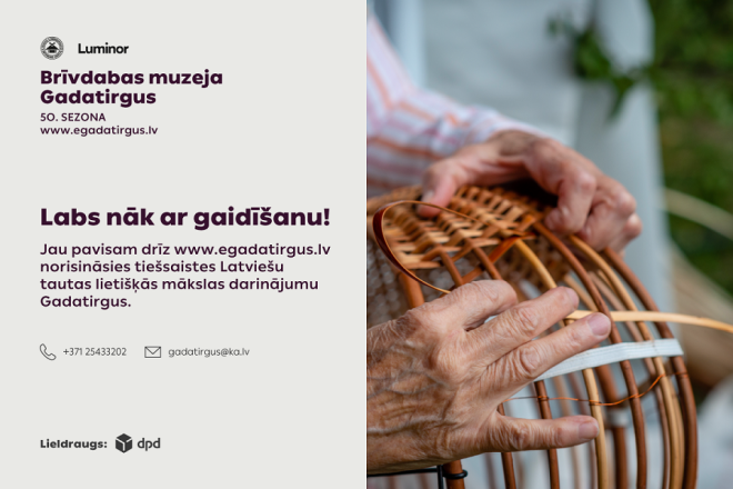 Ar Luminor bankas atbalstu 50. Latviešu tautas lietišķās mākslas darinājumu Gadatirgus šogad notiks tiešsaistē. Vietnē www.egadatirgus.lv Brīvdabas muzeja Gadatirgus dalībnieki – amatnieki un mājražotāji – publicēs savus darinājumus, savukārt pircēji no Latvijas un citām valstīm varēs ērti aplūkot piedāvājumu un sazināties ar meistariem, lai iegādātos izvēlētās preces. Plānots, ka portāls darbību uzsāks augusta vidū.