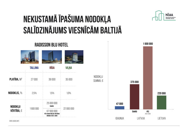 “Ja paskatāmies uz nekustamā īpašuma nodokļa īpatsvaru no IKP Baltijas valstīs, jau tagad Latvijā redzam pārāk lielu atkarību no NĪN ienākumiem. Igaunijā tie ir 0.2% no IKP, Lietuvā 0.3%, bet Latvijā 0.7%. Ja nodokļu slogs Latvijā pieaugs, investīciju vide šajā sektorā, kas jau līdz šim neizcēlās ar pievilcību, kļūs vēl mazāk konkurētspējīga. Investīcijas birojos, biznesa pakalpojumu centros, ražotnēs, viesnīcās, loģistikas centros un citos objektos pilnīgi noteikti vēl izdevīgākas kļūs Viļņā un Tallinā, un abas kaimiņu galvaspilsētas turpinās mūs apsteigt,” piebilst Mārtiņš Vanags.