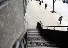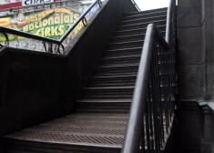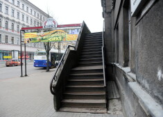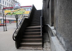 Rīgas cirka trepes, pret kurām, kā atzinusi Būvniecības valsts kontroles biroja vadība, balstās fasādes siena gar Merķeļa ielu, kura atdalījusies ...