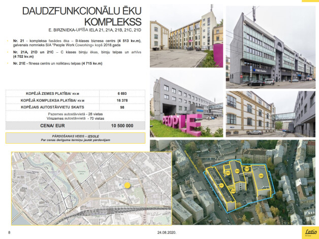 Kopējā kompleksa platība ir 16 378 m2 un indikatīvā sākuma cena – 10,5 miljoni eiro.