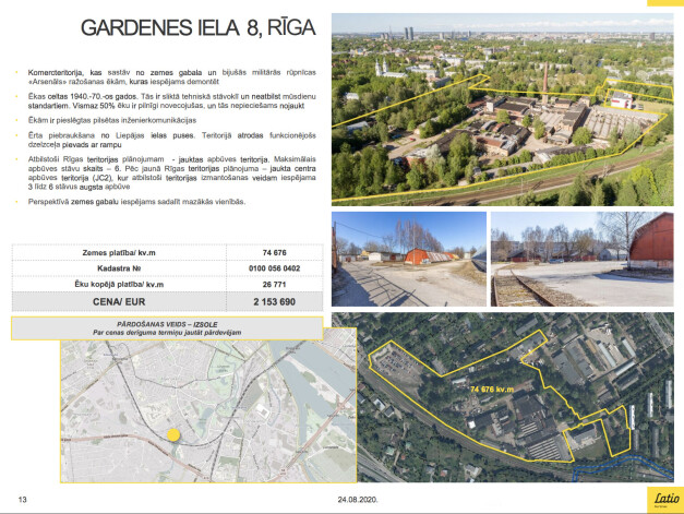 Ēkas uz šī zemes gabala ir celtas 1940.-1970. gados, ir sliktā tehniskā stāvoklī un neatbilst mūsdienu standartiem, teikts “Latio” sarakstā.
