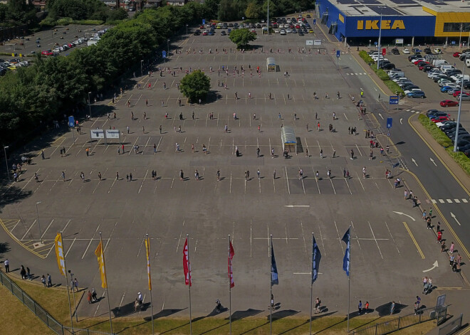 Briti vairākas stundas stāv rindā, lai iekļūtu atkal atvērtajā "IKEA"