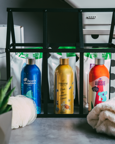 Atkārtoti uzpildāmās un 100% pārstrādājamās "Pantene", "Head & Shoulders" un "Aussie" šampūnu pudeles ir pieejamas arī Latvijā, ceļu pie patērētājiem sākot veikalos "Drogas". Good Refill sistēma sastāv no atkārtoti lietojamas 100% alumīnija šampūna pudeles un pārstrādājama materiāla uzpildes pakas. Tā izgatavota, izmantojot par 60% mazāk plastmasas. Atkārtoti izmantojamā alumīnija šampūna pudele ļaus miljoniem cilvēku Eiropā samazināt izmantotā iepakojuma apjomu. Turpmāk, pērkot šampūnu mīkstajā plastmasas iepakojumā un mājās pārlejot jau esošajā alumīnija pudelē, katram ir iespēja samazināt radīto atkritumu apjomu, turklāt šampūna iepakojums ir atkārtoti pārstrādājams. "P&G" kā lielam uzņēmumam ir iespēja ietekmēt daudzu cilvēku paradumus ilgtermiņā. Inovācijām populāru produktu iepakojumā ir plašas iespējas radīt vērienīgas izmaiņas.