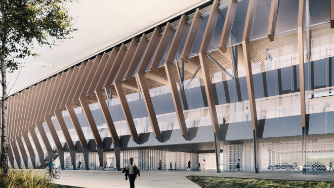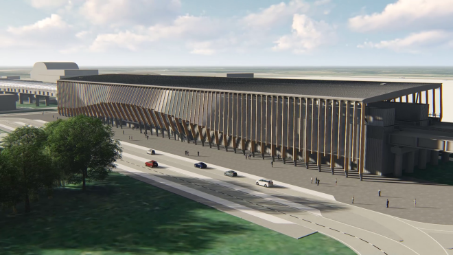 "Rail Baltica" dzelzceļa stacija, tai pieguļošās estakādes un dzelzceļa infrastruktūra starptautiskajā lidostā „Rīga” būs pirmais ātrgaitas dzelzceļa un avio savienojuma centrs Baltijā.