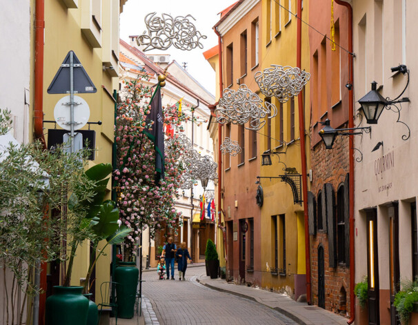 Klusajos pagalmos ir izvietotas skulptūras, ik pēc pārdesmit metriem slēpjas kāds sienas gleznojums, un ieliņās ik pēc pāris mēnešiem tiek nomainītas piekaramās dekorācijas - kādā brīdī tie bija gaisa baloni, tad zvaigznītes, šobrīd spirālveida mākonīši, un šis rajons tiek saukts par vienu no instagramīgākajiem Viļņā. Par to ir parūpējušies arī vietējie uzņēmēji, izveidojot krāšņus kafejnīcu skatlogus.