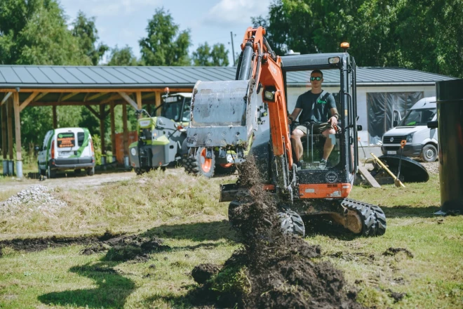 2. Kolīdz notekūdeņu sistēmas izbūve ir veikta, tam seko meliorācijas darbi. Kā jau minējām augstāk rakstā, būtisks atvieglojums šajā objektā ir fakts, ka nav nepieciešams infiltrācijas lauks un ūdeni paredzēts novadīt netālu esošajā meliorācijas grāvī, taču, neskatoties uz to, sākotnēji īpašums bija ļoti applūdis. Savienojot lietus ūdens sistēmas tranšejas ar drenāžas caurulei paredzēto tranšeju jeb kopējo meliorācijas trasi, tiek izrakts attālums no īpašuma līdz meliorācijas grāvim (daļa rakšanas darbu noritēja blakus esošajā īpašumā, tāpēc svarīgi vienmēr savlaicīgi saskaņot ar kaimiņiem jebkādus darbus, kas veicami viņu teritorijā). Turklāt meliorācijas darbiem tika izmantotas drenāžas trubas ar kokosa filtru (diametrs 113/128mm). Pateicoties meliorācijas caurulēm tika nodrošināts tas, ka gruntsūdeņu līmenis nepaceļas virs 40cm.
