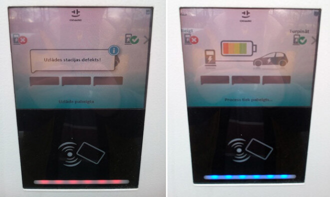 Sāksim ar to, ka pie uzlādes iekārtas, kas Ogrē patiešām atrodama, nav neviena vārda, kā uzpilde veicama. Instrukcija gan norāda, ar kuru galu kontaktligzdā spraužams štepselis, taču ar to arī pamācība beidzas. Blakus esošais bankas karšu lasītājs ir beigtāks par beigtu un nereaģē ne uz kādām manipulācijām. Pēc kontaktu savienojuma, uzlādes iekārta palūdz uzspiest uz taustiņa “A”, lai sāktu uzlādi. Ierīce parāda, ka automobiļa atlikušie krājumi ir vien 62 procenti, pāris reizes nobrakšķ un paziņo, ka “uzlādes stacijas defekts”.
