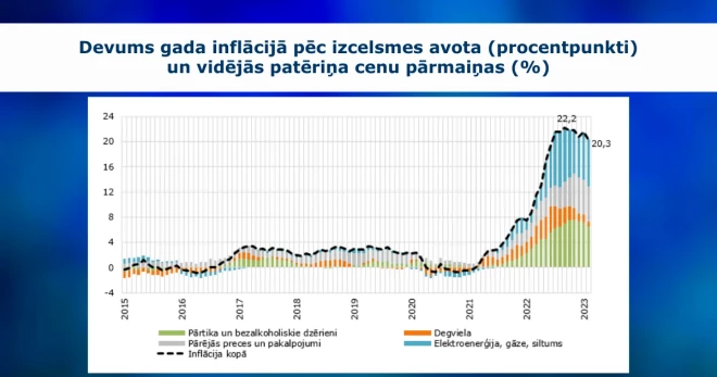 Kopumā nākamajos mēnešos Latvijā gaidāms straujš inflācijas līmeņa kritums, vasarā gada inflācijai samazinoties zem 10%, bet gada beigās noslīdot līdz pāris procentiem.